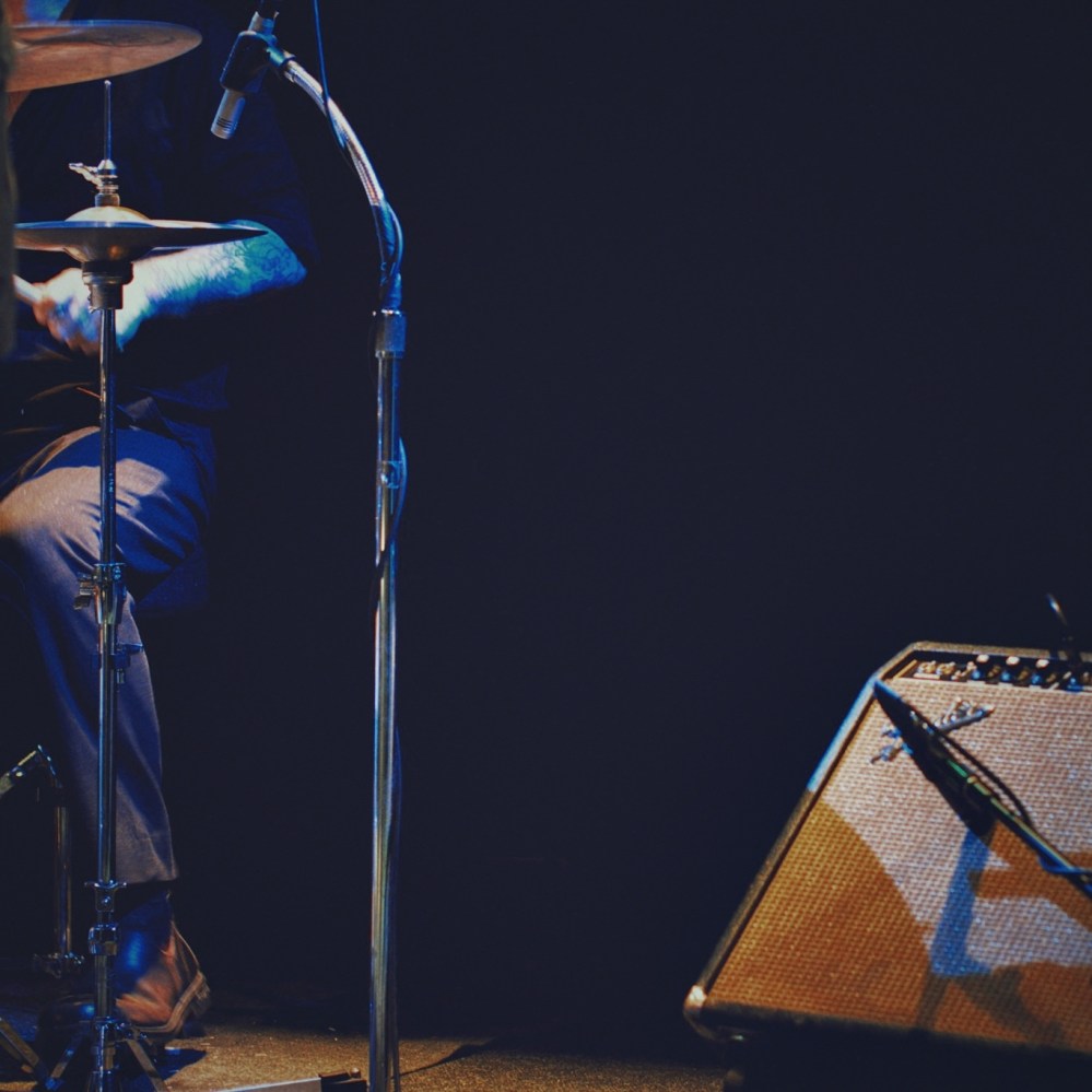 ha! not to dissimilar in composition to the photo from Wire [ here ], and it is not surprising already. perhaps many more to come: work on the elements on stage, as an easy way to focus the lens, and then add parts of the musician— in this case, drummer extraordinaire John McEntire (notably, also from Tortoise). this marked the gig with the last use of a cropped sensor, and fighting low-light conditions (and associated noise). not that the habits created from such challenges would disappear with an improved lower-noise and shallower depth of field of a full 35mm sensor.
